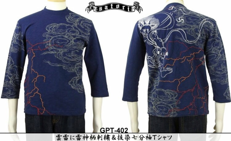 SATORI/さとり7分袖Tシャツ GPT-402 雷雲に雷神/和柄