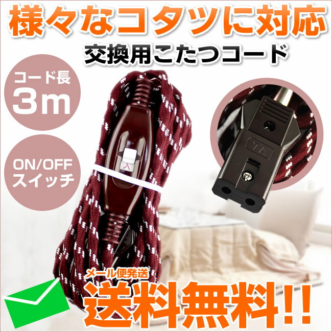 【メール便送料無料】 こたつコード (コード長3m) MK-3[7A 125V 2個口プラグ 中間スイッチ付き 電気こたつコード プラグ 1000円ポッキリ ぽっきり 交換用] 送料込み【RCP】マクサー電気製[920]