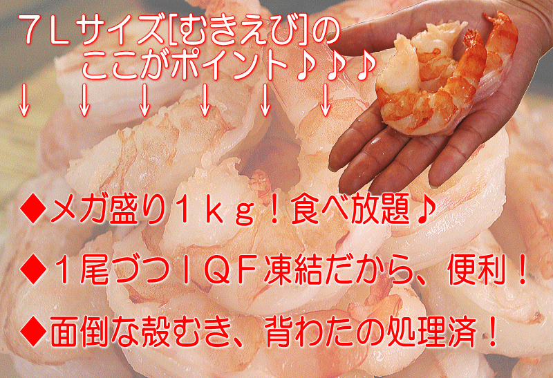 ■商品内容■ ■天然 特大7Lサイズ[むきえび]! ■たっぷり1kg! ※ここがポイント♪