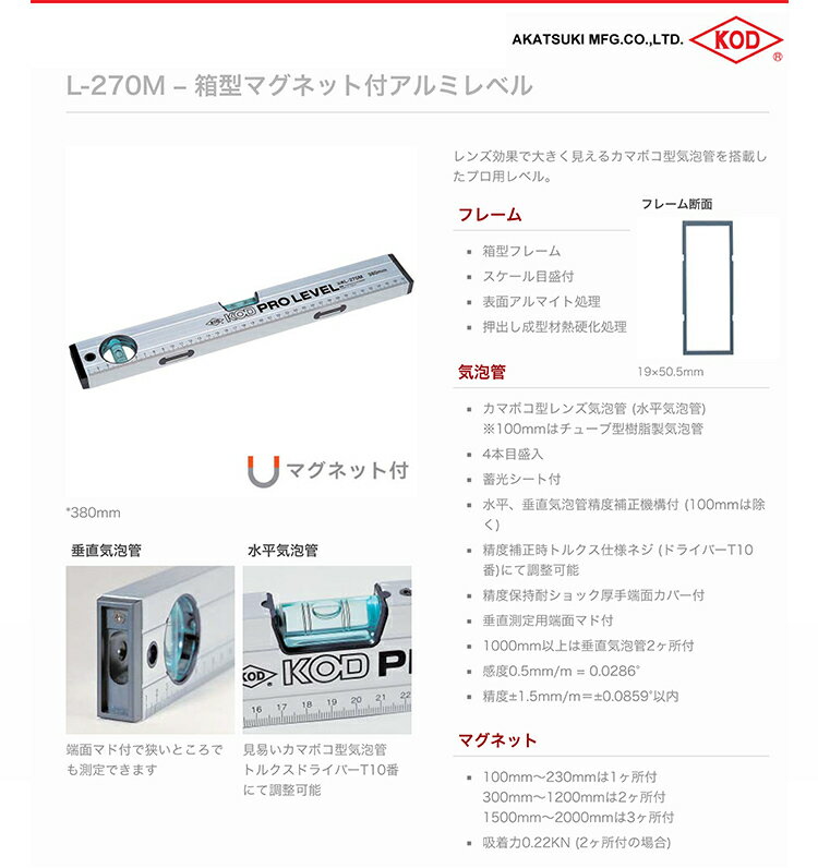 【超特価】【オススメ】 〈KOD〉 プロレベル マグネット付 L-270M 750mm