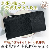 【大感謝価格】 藤原袋物 牛革長財布 印伝使い 【返品キャンセル不可】