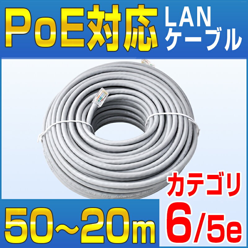 防犯カメラ PoE LANケーブル 50-20m カテゴリ6 カテゴリ5e cat6 Cat5e 50メートル 20メートル 1Gbps 100MHz PoE給電対応 インターネット ネットワークカメラ LAN