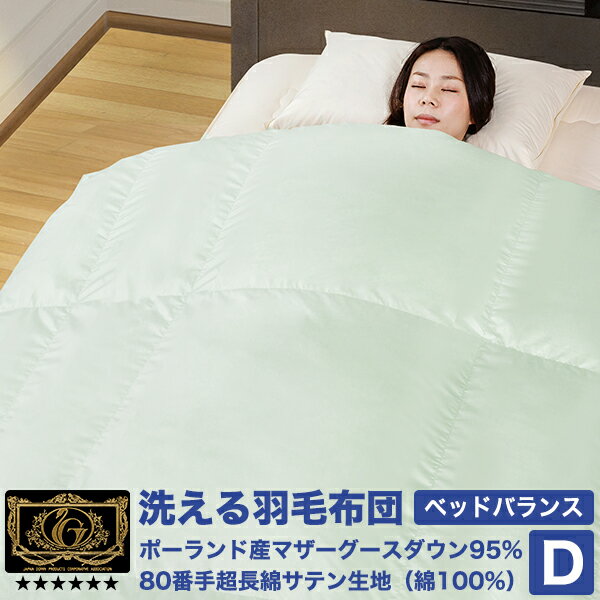 洗える羽毛布団《ベッドバランス》ダブル ポーランド産ホワイトマザーグースダウン95% (440dp以上) 羽毛量1.7kg 【6つ星プレミアムゴールド取得】【グッドふとんマーク取得】