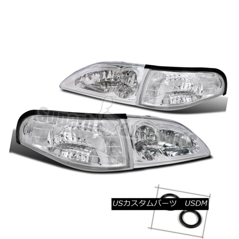 ヘッドライト 1994-1998 Ford Mustang Headlight w/ Clear reflector+Corner Signal Lamps Chrome 1994-1998フォードマスタングヘッドライト(クリアリフレクター+トウモロコシ) erシグナルランプクローム